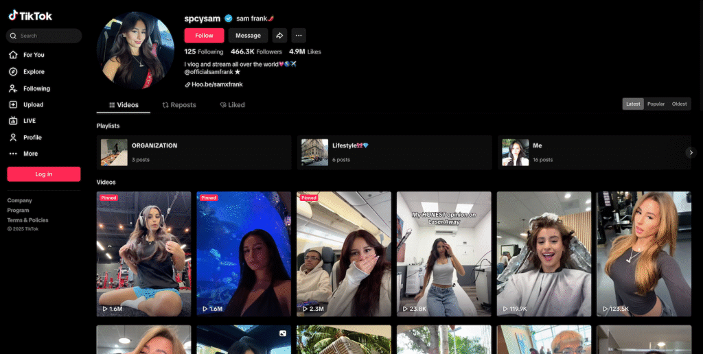 Sam Frank began her career by posting dance and lip-sync videos on TikTok under handles like samxfrank and spcysam. These short-form videos resonated with a young audience, and she grew her following steadily.